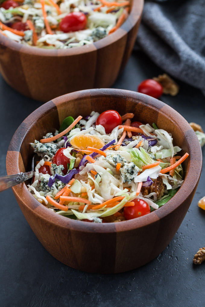 Winter Citrus Crunch Salad is fresh and flavourful, with crumbled blue cheese, crunchy veggies and walnuts, and a tangy citrus dressing.