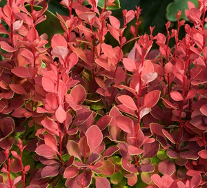 This award winning barberry sports a unique color combination for an easy care shrub. New spring foliage starts out a vibrant coral and ages to a ruby red that lasts into fall. Useful as a vertical element in borders, landscapes, or containers.