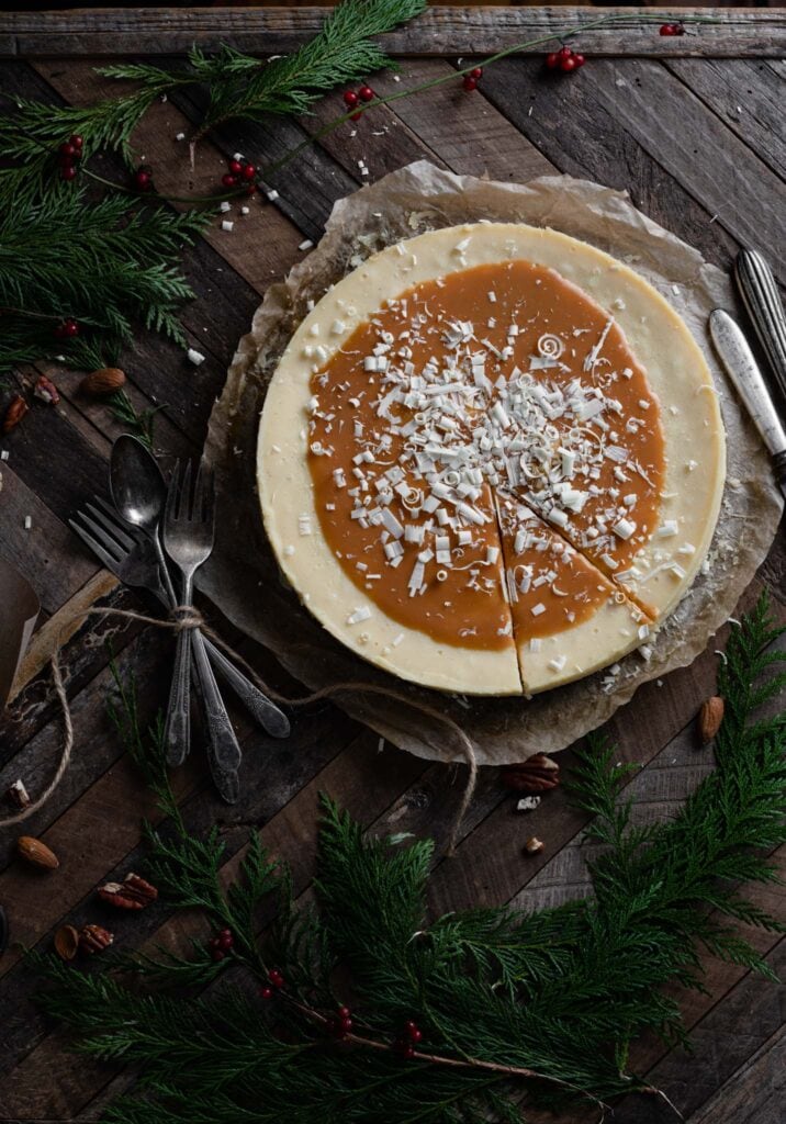 White Chocolate Eggnog Cheesecake