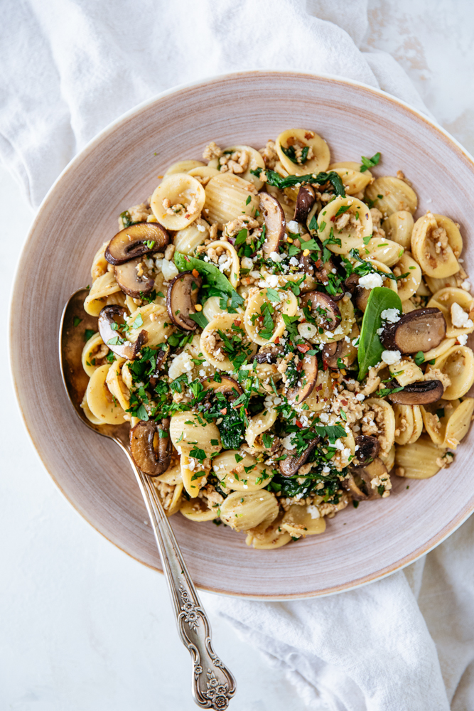 WEEKNIGHT PASTA WITH TURKEY AND SPINACH