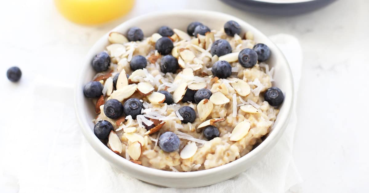 This delicious Blueberry Coconut Oatmeal recipe is made in the slow cooker with healthy ingredients like steel cut oats, coconut milk and blueberries. I love it because it is easy and healthy!